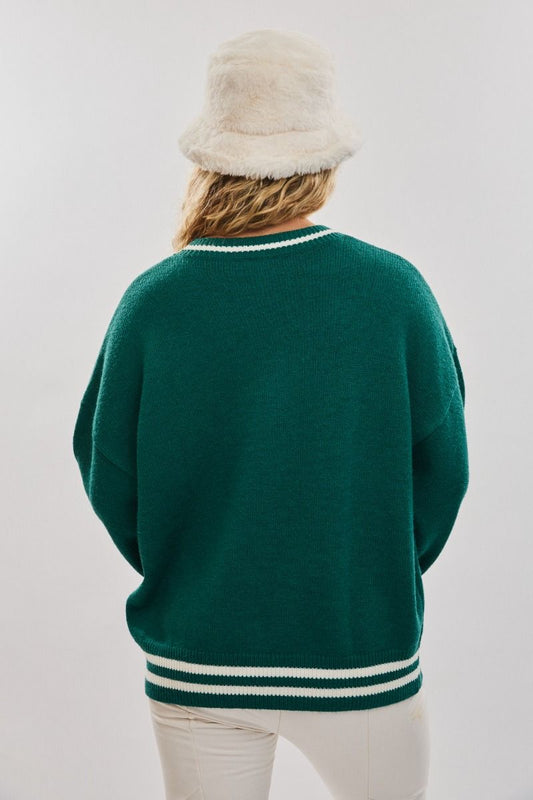 "SATURDAY" SHORT SLEEVE ROUND NECK SWEATER TOP