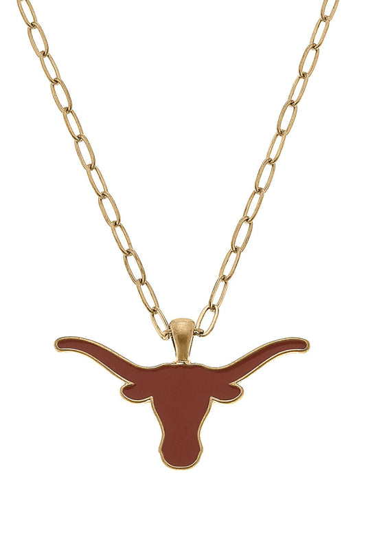 Texas Longhorns Logo Enamel T-Bar 16" Necklace in Burnt Orange/White