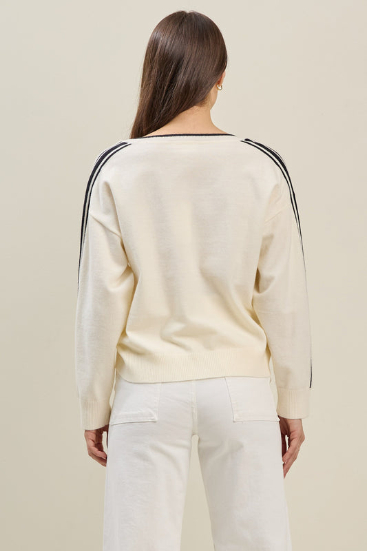 V-NECK SWEATER TOP WITH STRIPE ON SHOULDER