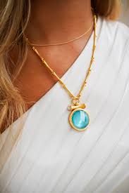 Bamboo Statement Necklace Iridescent Bahamian Blue