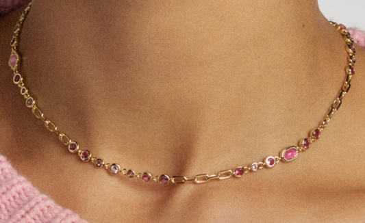 TATUM SHORT PENDANT NECKLACE GOLD PINK MIX