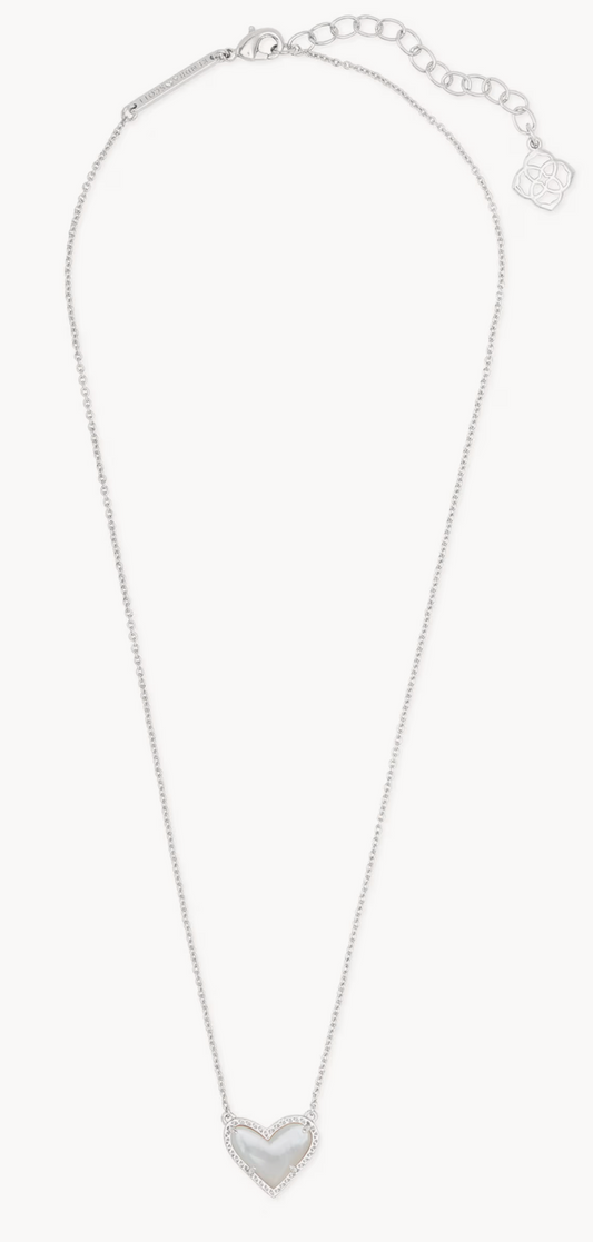 ARI HEART STATEMENT SHORT PENDANT NECKLACE SILVER IVORY MOTHER OF PEARL