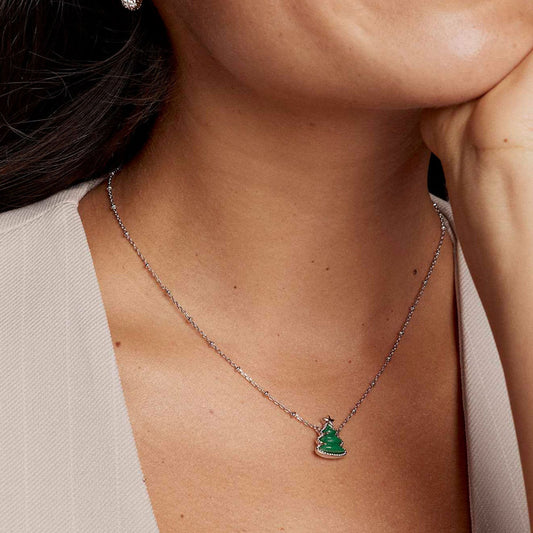 HOLIDAY TREE SHORT PENDANT NECKLACE SILVER GREEN QUARTZITE