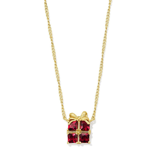 PRESENT SHORT PENDANT NECKLACE GOLD RED CRYSTAL