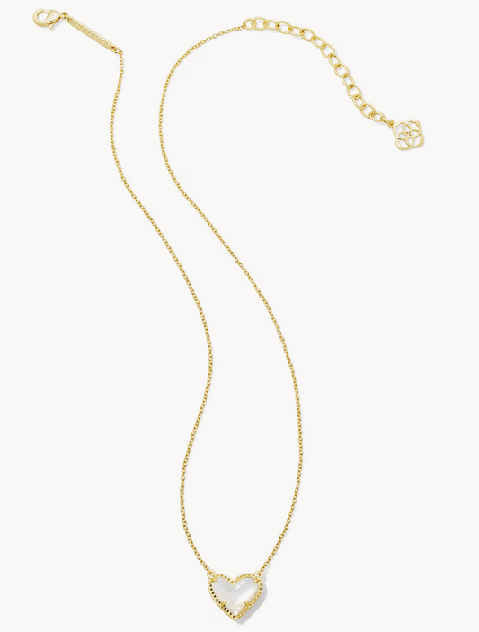 ARI HEART STATEMENT SHORT PENDANT NECKLACE GOLD IVORY MOTHER OF PEARL