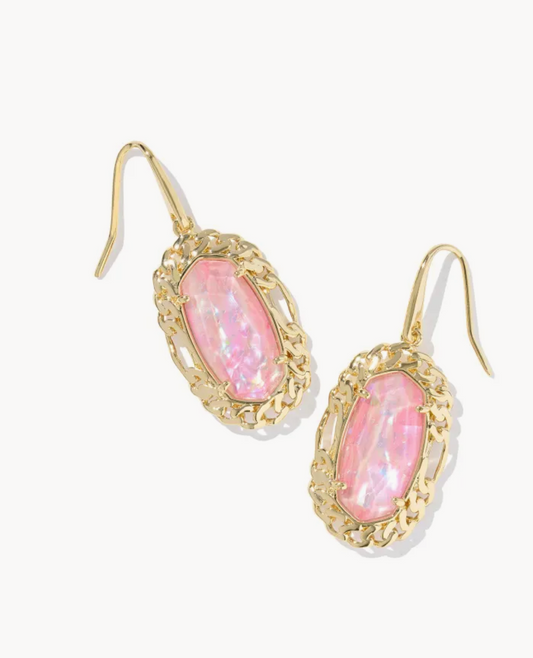 DANI FIGARO FRAME DROP EARRINGS GOLD PINK IRIDESCENT MOTHER OF PEARL