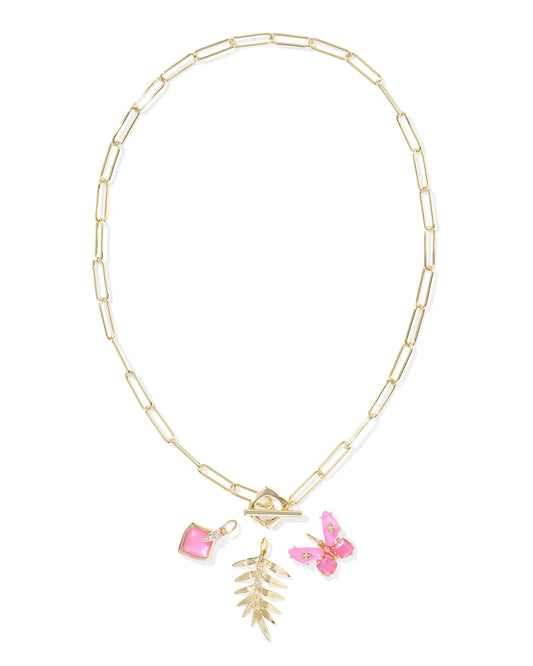 BIANCA BUTTERFLY CHARM NECKLACE GOLD PINK MIX