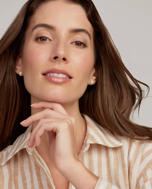 GRAYSON STONE STUD EARRINGS GOLD PINK IRIDESCENT MOTHER OF PEARL