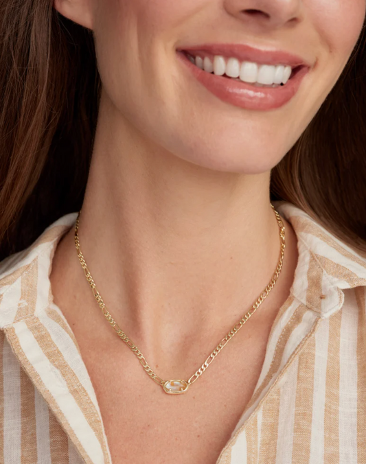 ELISA FIGARO CHAIN SHORT PENDANT NECKLACE GOLD IRIDESCENT ABALONE