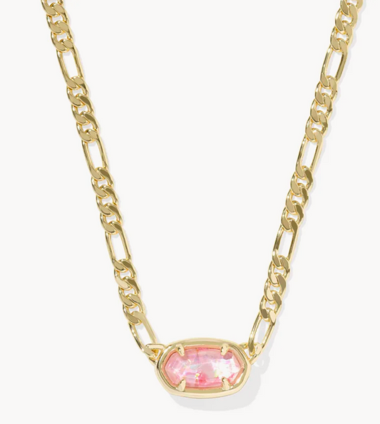 ELISA FIGARO CHAIN SHORT PENDANT NECKLACE GOLD PINK IRIDESCENT MOTHER OF PEARL