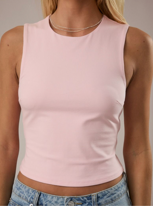 DOUBLE LINED SLEEVELESS ROUND NECK TOP