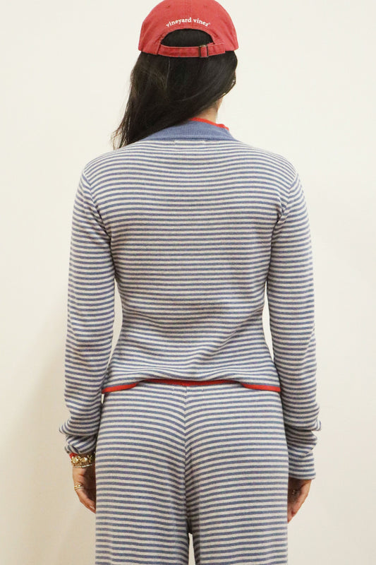 STRIPED HALTER NECK BUTTON FRONT TOP