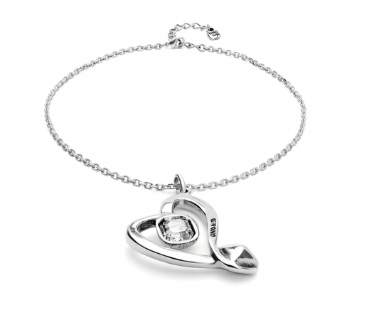 medium metal alloy pendant with sterling silver plating and faceted crystal heart