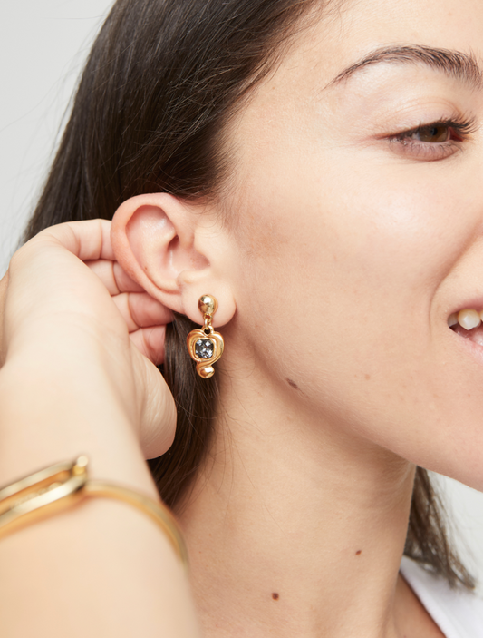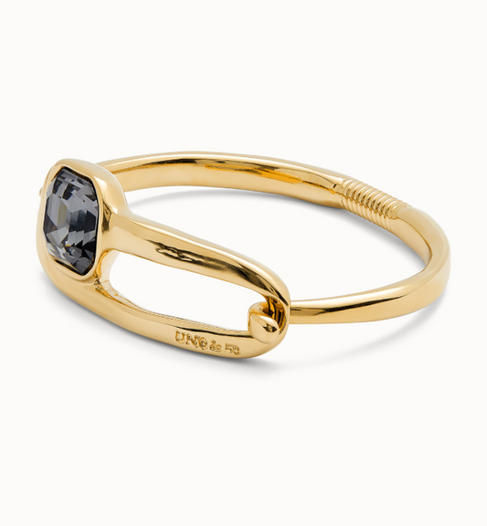 rigid 18k gold plated metal alloy bracelet with black faceted crystal M