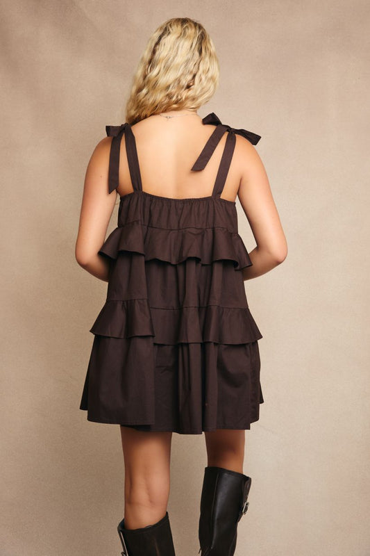 RUFFLE DETAIL FLOWING SLEEVELESS MINI DRESS