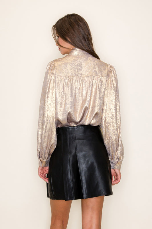 TIE BOW FRONT DETAIL LONG SLEEVE BLOUSE