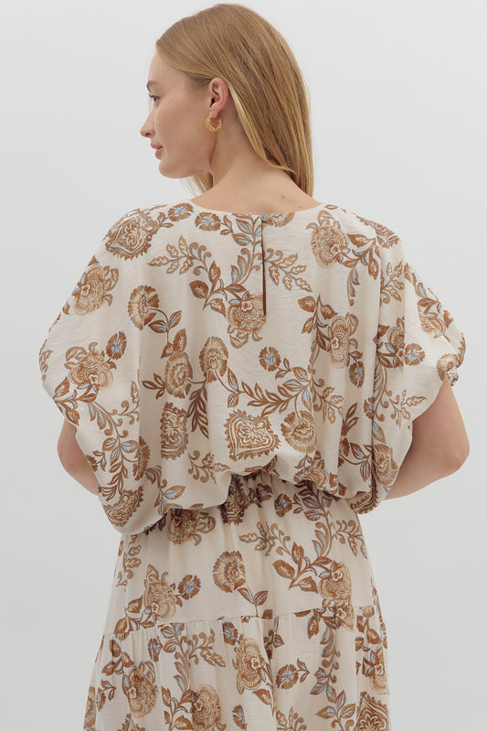 FLORAL BUBBLE SLEEVE RUFFLE HEM MINI DRESS