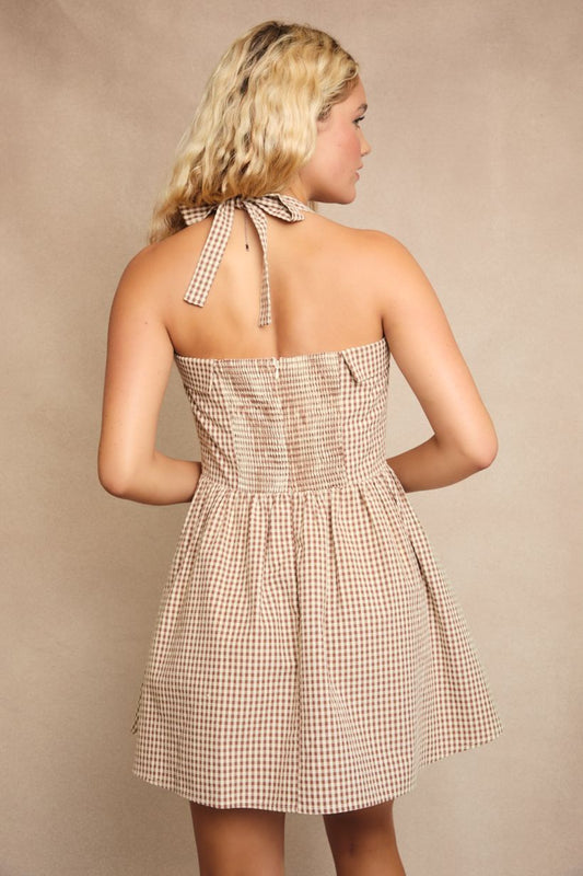 HALTER MINI DRESS WITH BLACK SMOCKING