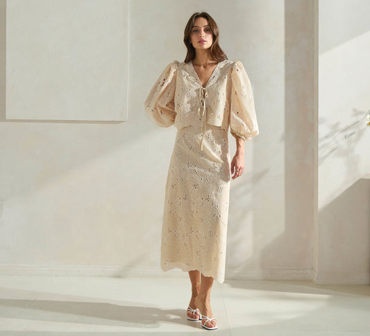 SCALLOP EDGE FLOWER EYELET LACE SKIRT