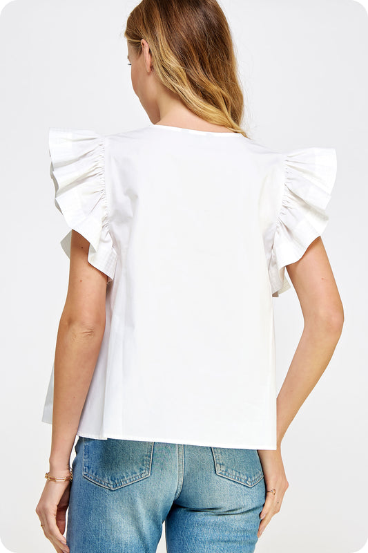 FLUTTER SLEEVES TUNIC STYLE POPLIN TOP