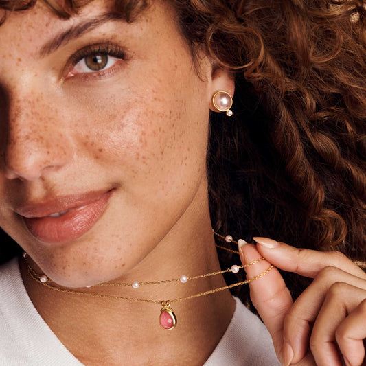 The Pink Delicate Station Necklace-Pink Pearl-OS
