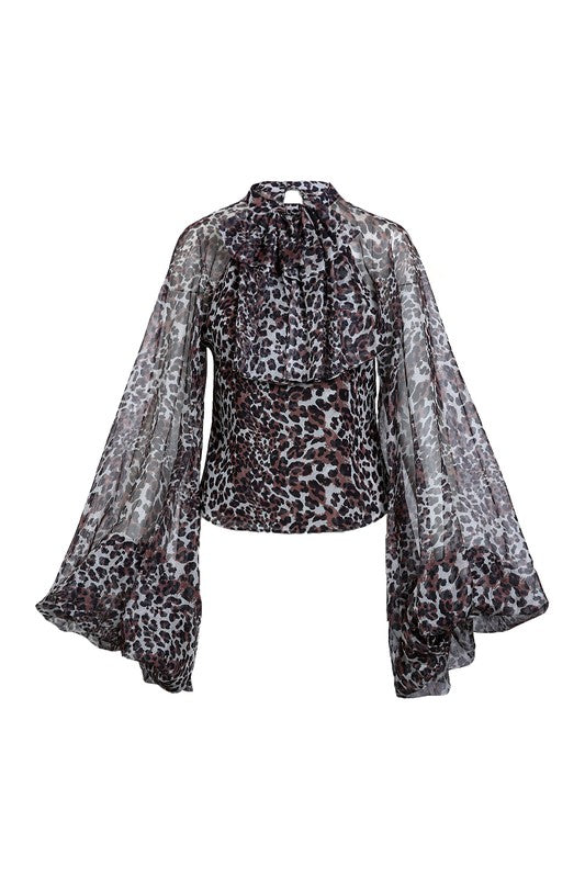 LEOPARD PRINTED RUFFLE NECTIE CHIFFON BLOUSE