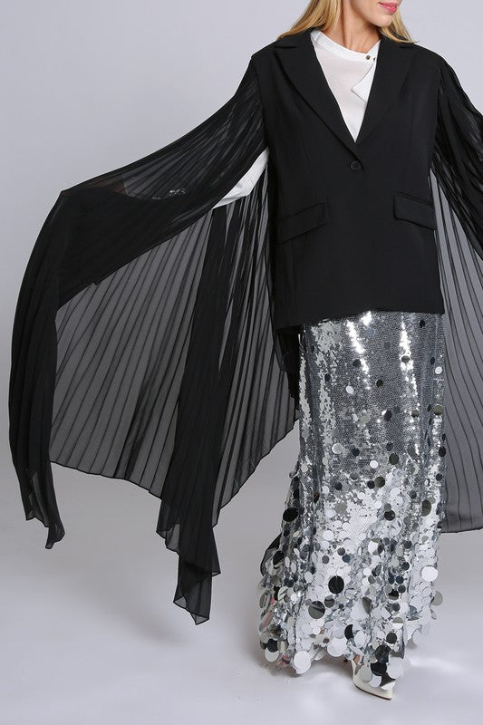 SINGLE BREASTED BLAZER WITH PLEATED CAPE SLEEVES