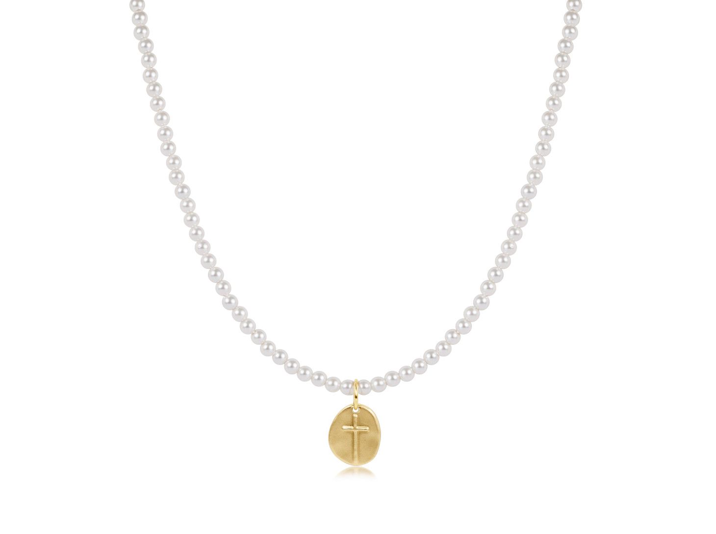 15" Choker Classic Pearl 3mm Bead - Inspire Small Gold Charm