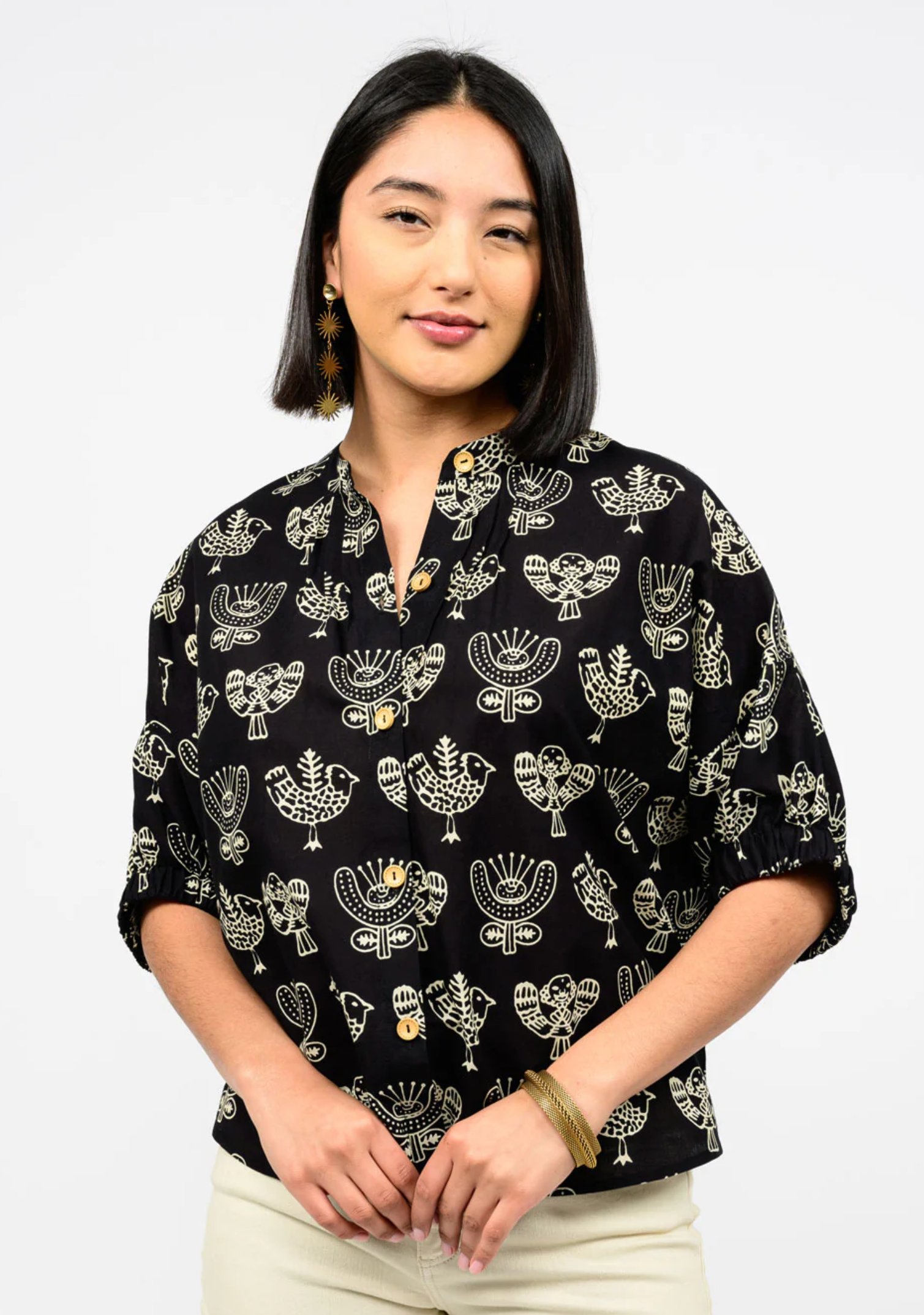 BLACK PRINT PONCHO TOP