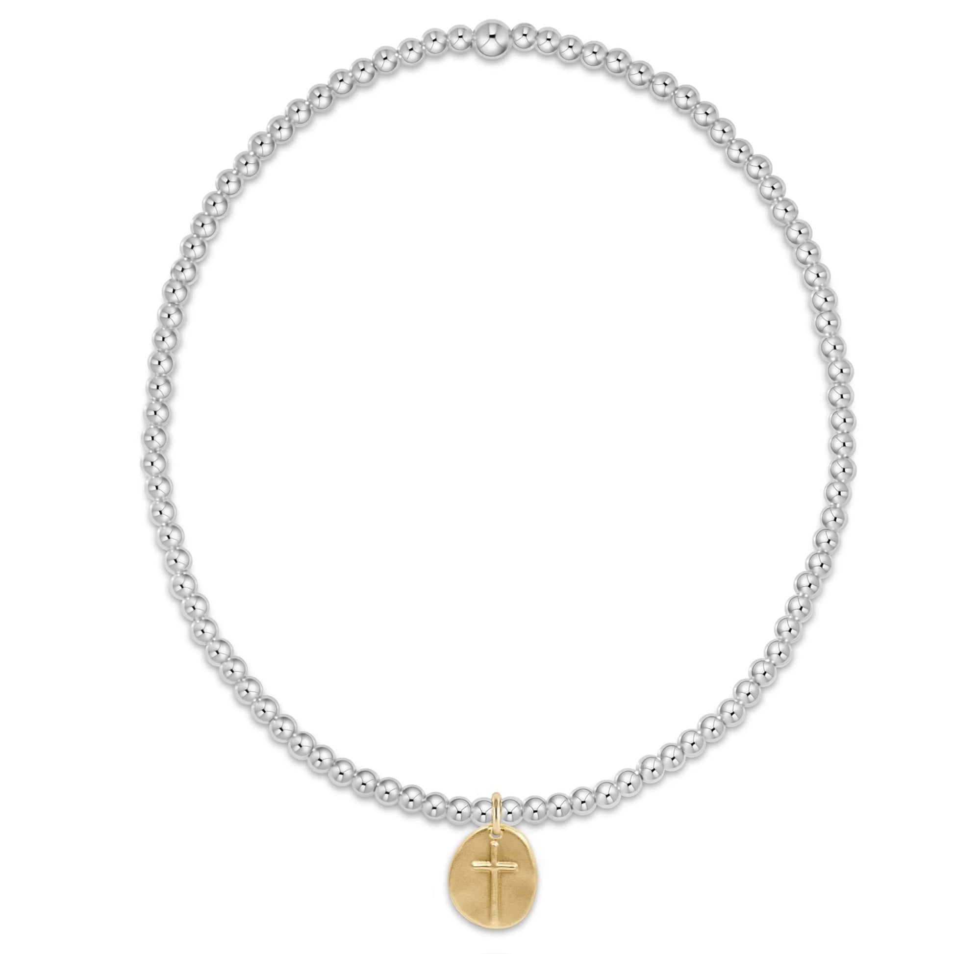 CLASSIC STERLING MIXED METAL 2MM BEAD BRACELET - INSPIRE SMALL GOLD CHARM