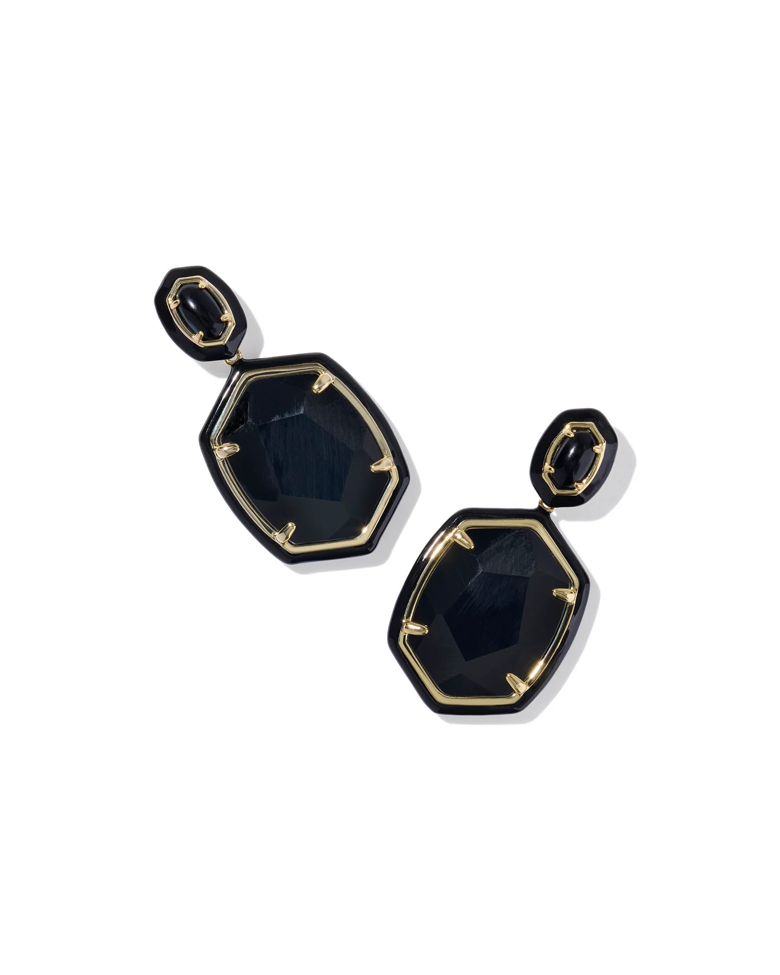 DAPHNE ENAMEL FRAME DROP EARRINGS GOLD BLACK AGATE