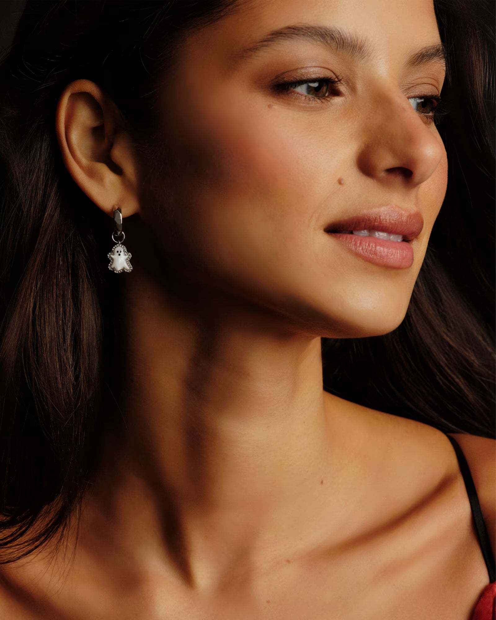 GHOST HUGGIE EARRINGS SILVER WHITE MOTHER OF PEARL