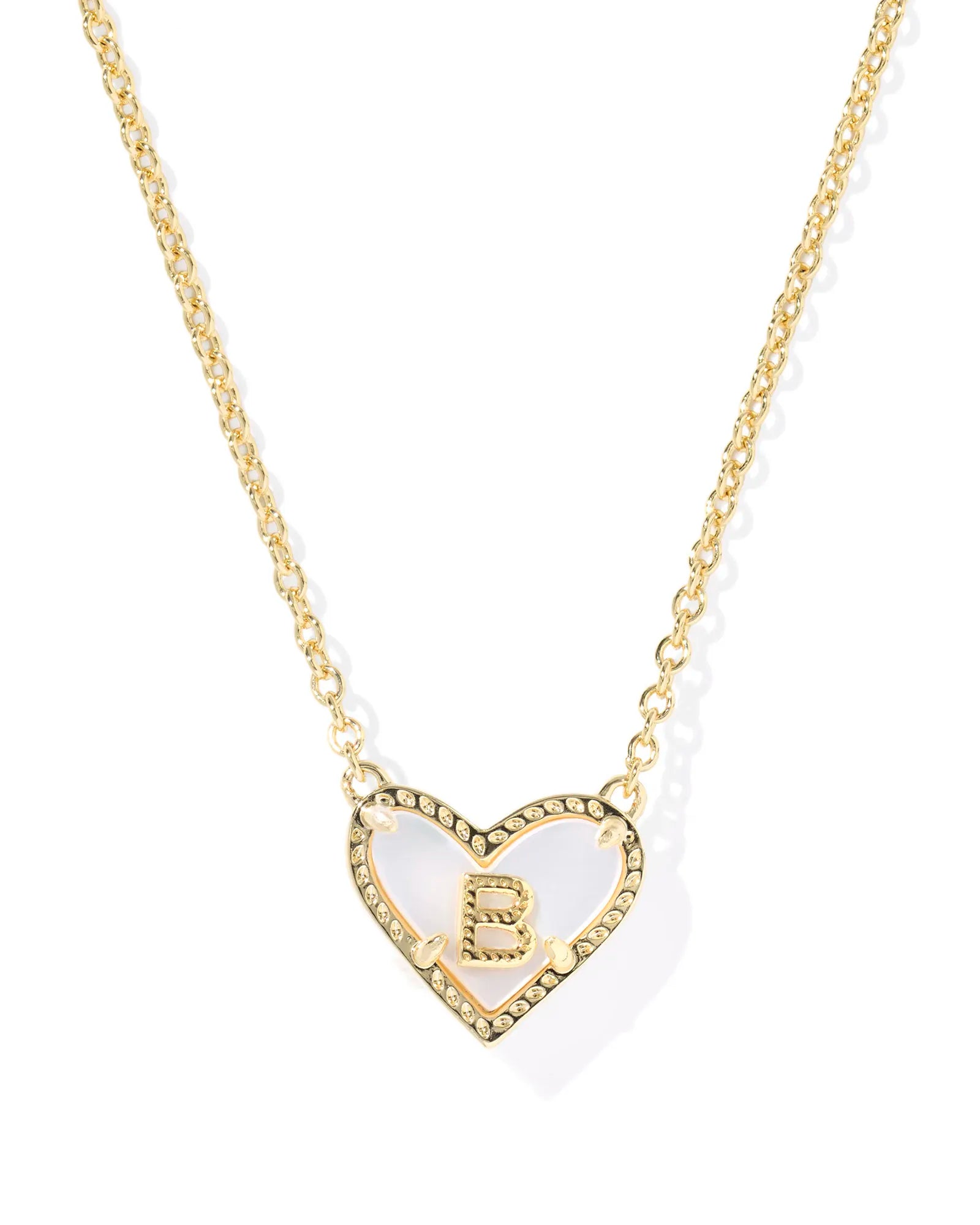 HEART LETTER B SHORT PENDANT NECKLACE GOLD IVORY MOTHER OF PEARL