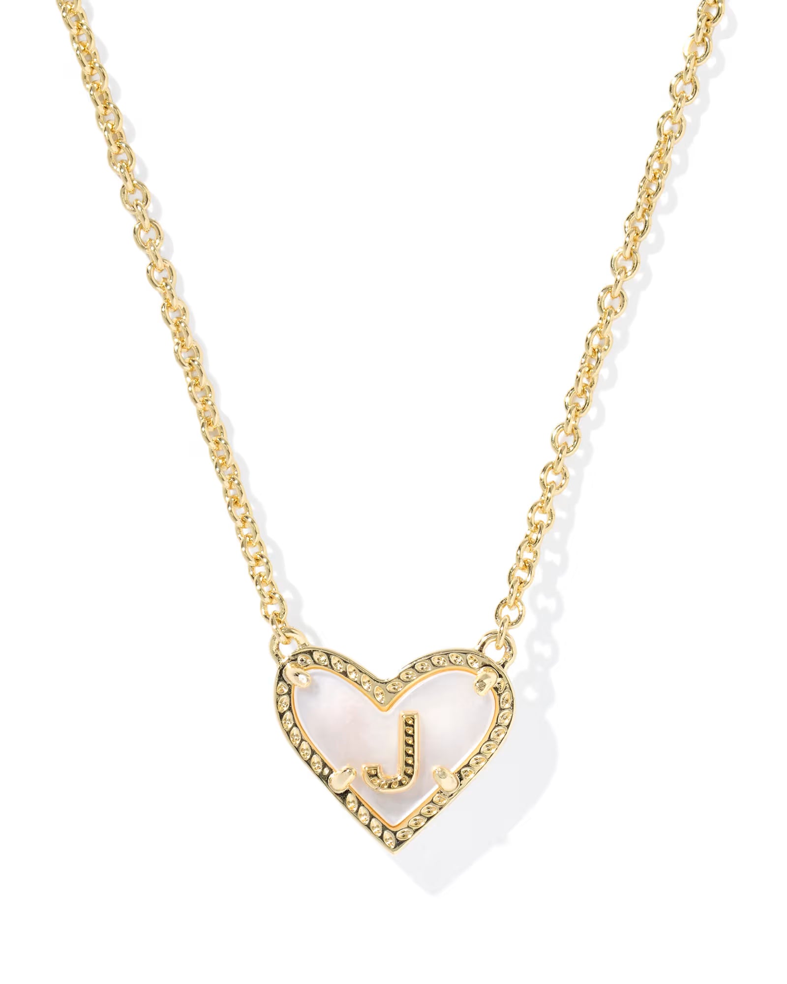 HEART LETTER J SHORT PENDANT NECKLACE GOLD IVORY MOTHER OF PEARL