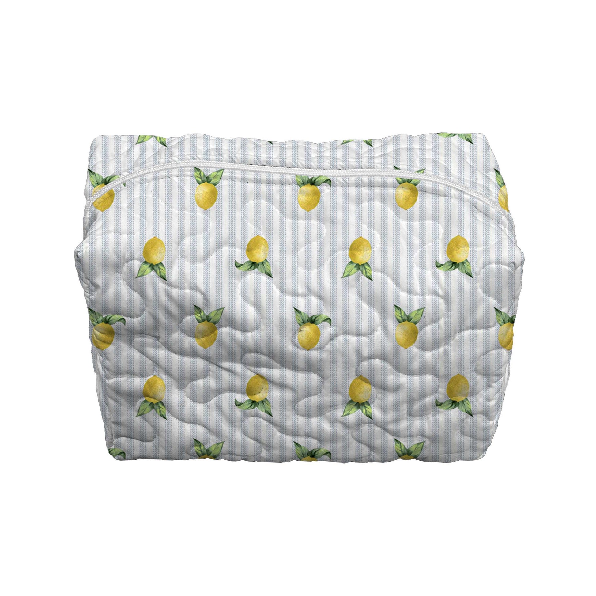 Lemon Sorbet Blue Quilted Large Makeup Bag