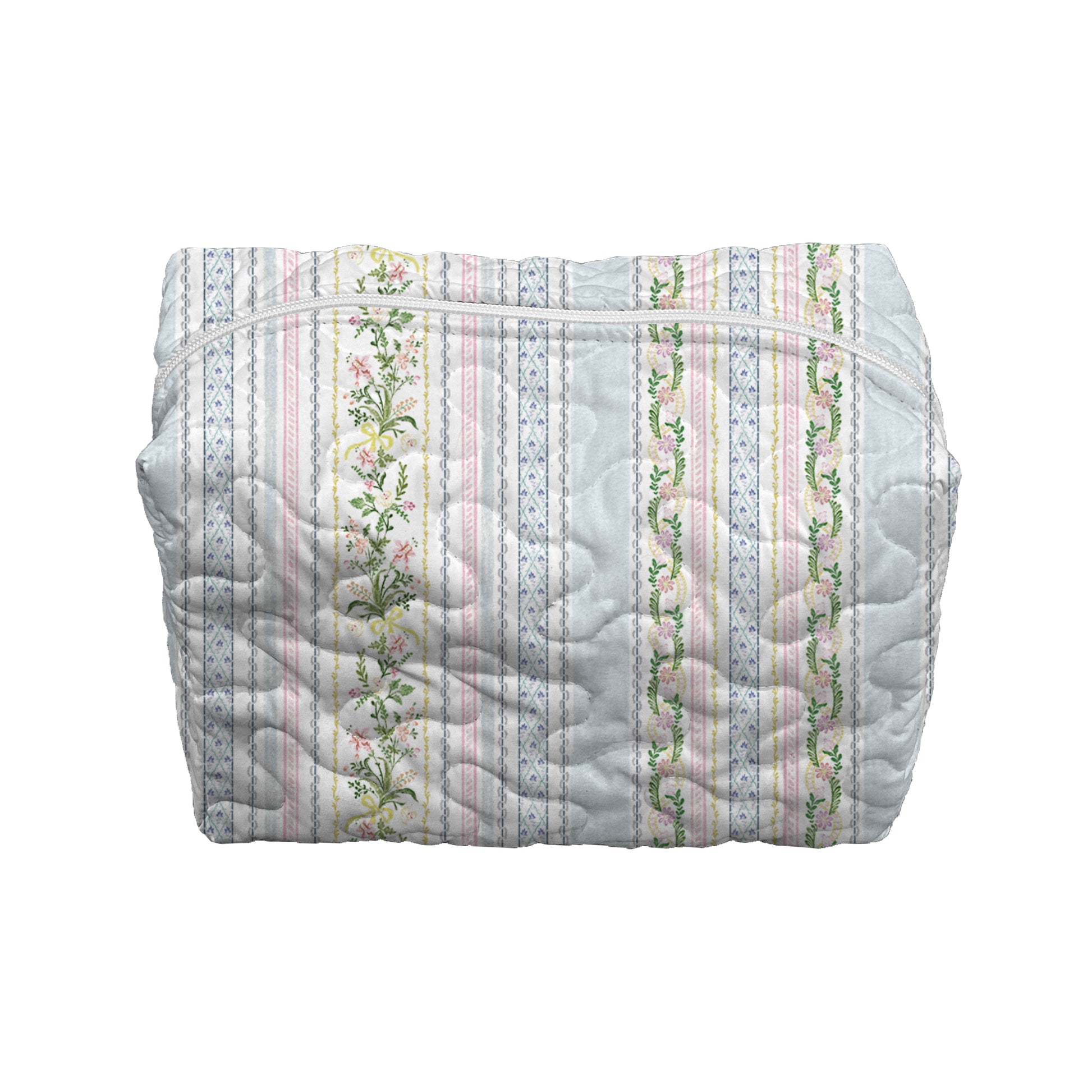 Milkglass Ribbon Blue Quilted Large Makeup Bag