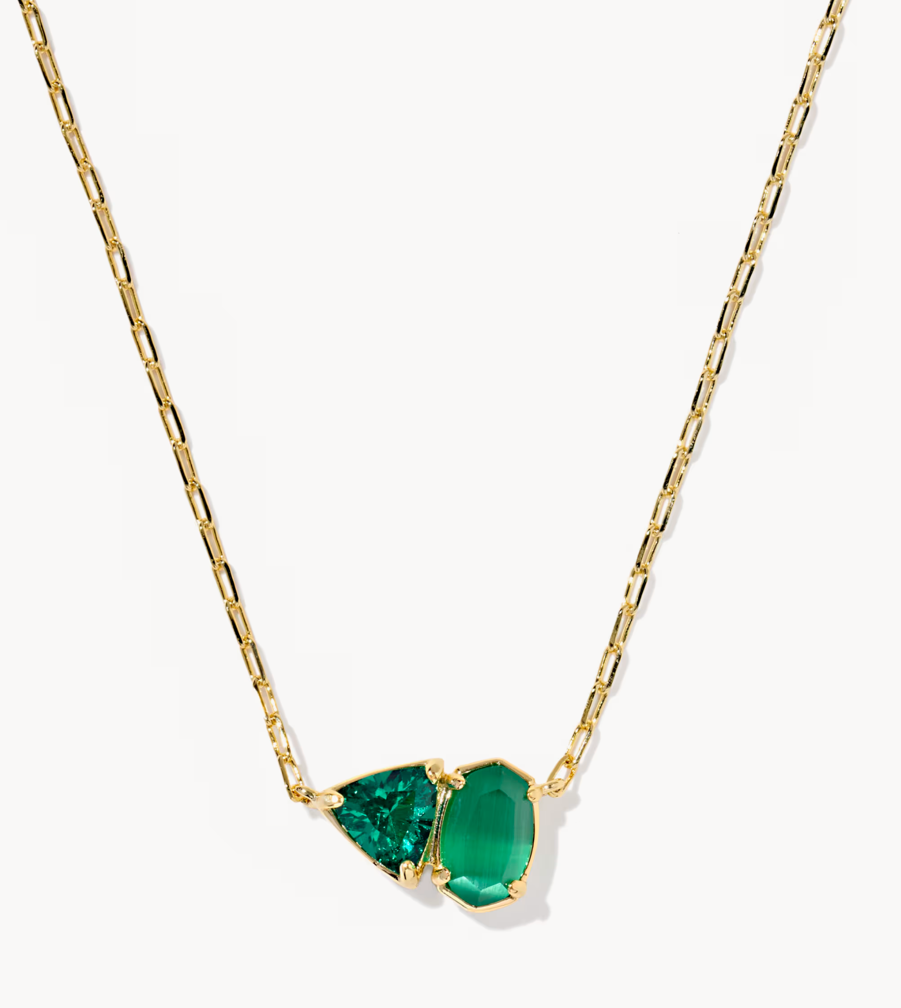 TATUM SHORT PENDANT NECKLACE GOLD DARK GREEN MIX